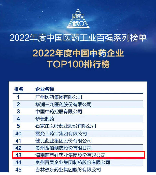 yp街机药业集团连续4年荣登“中国中药企业TOP100排行榜”,排名上升至第43位
